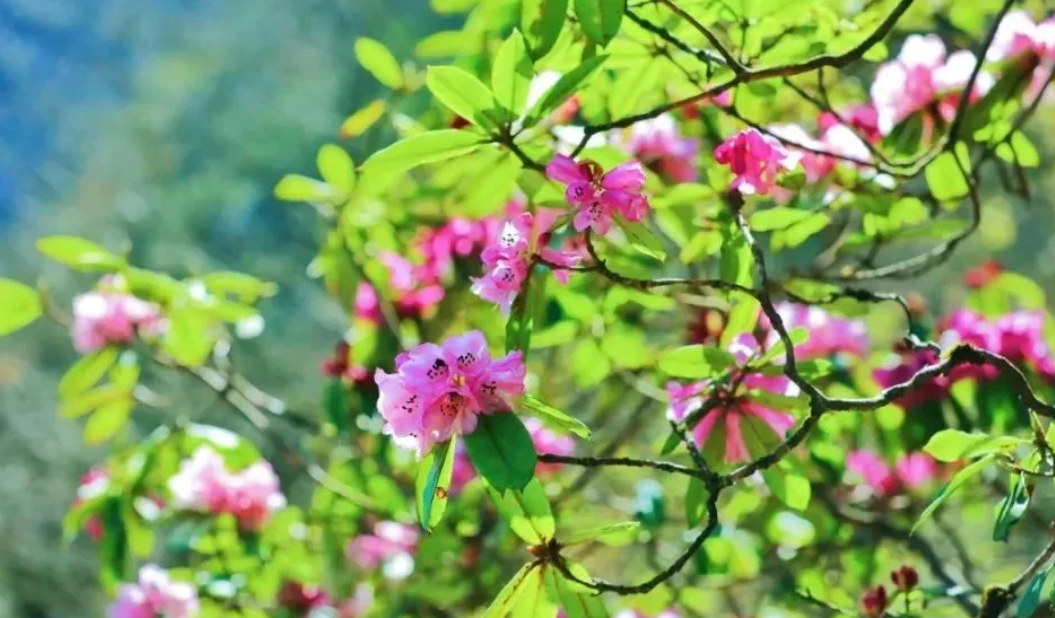 Species such as Rhododendron orbiculare, Rhododendron maculiferum, Rhododendron calophytum, Rhododendron pachytrichum, Rhododendron grandifolium, Rhododendron chlorostylum, Rhododendron intermedium, and Rhododendron faberi bloom in succession from lower to higher elevations, presenting a breathtakingly beautiful scene.